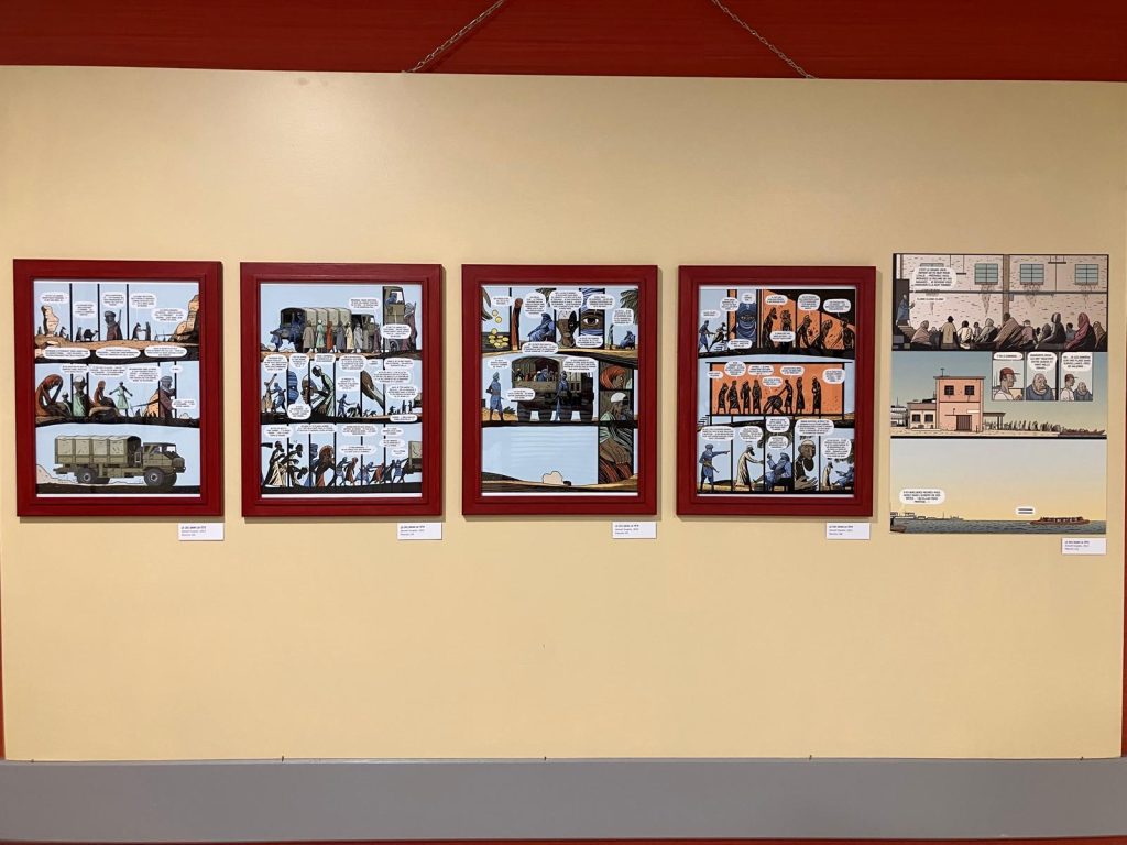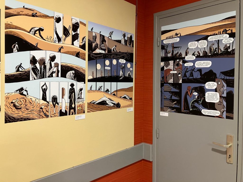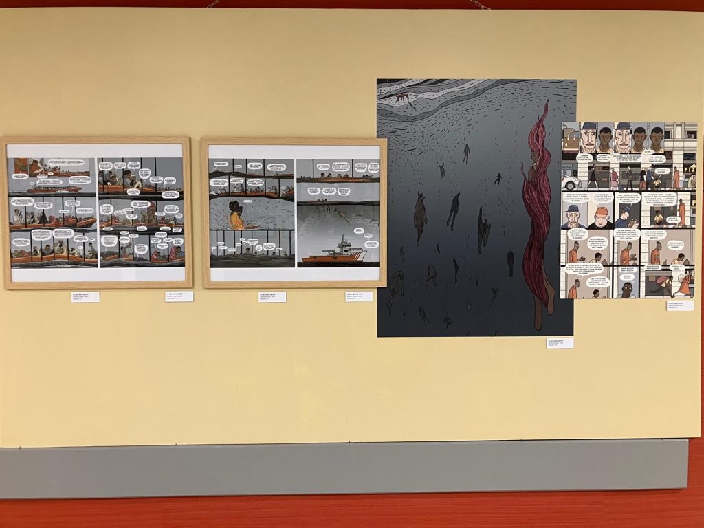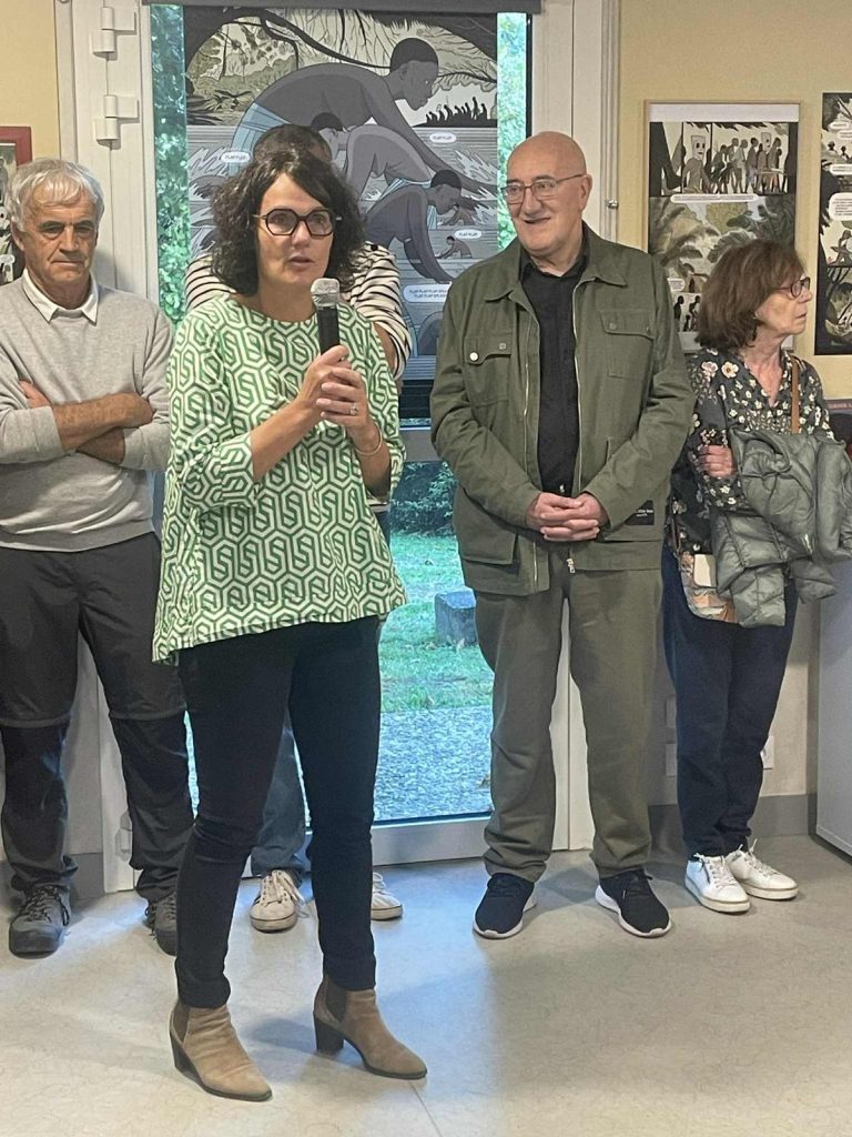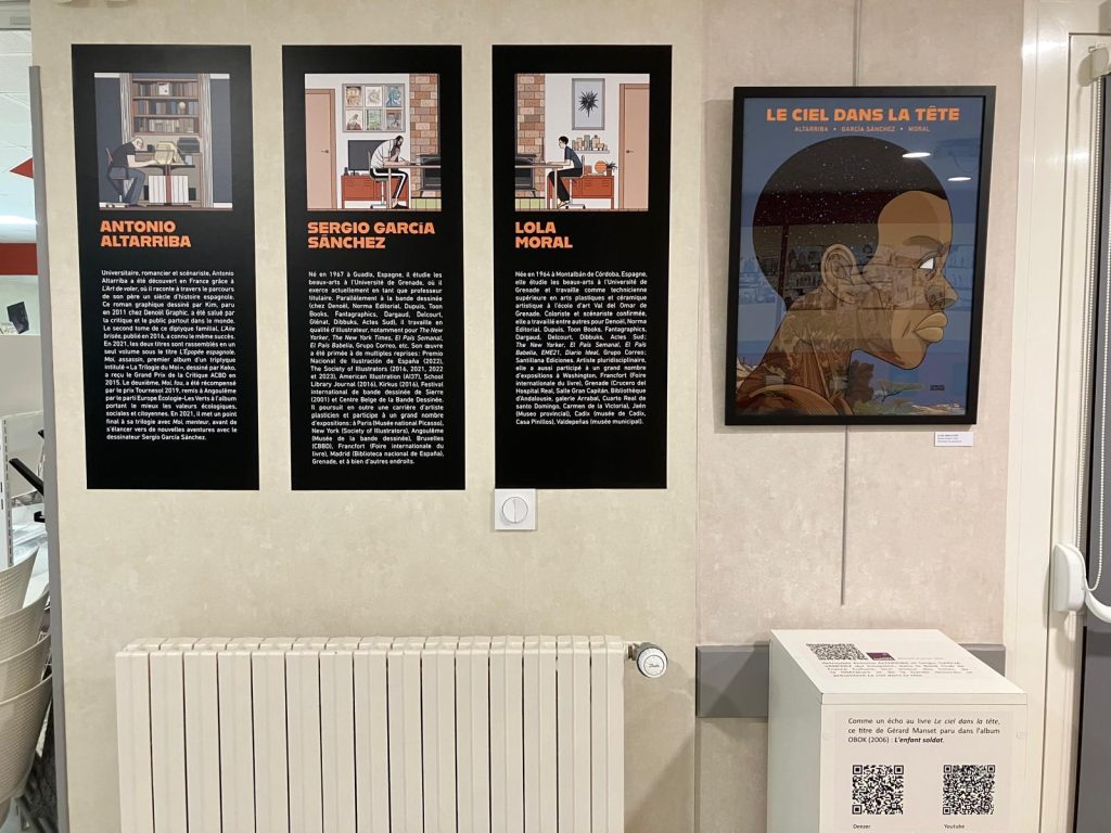 À la médiathèque d’Agonac, le Festival avait l’immense privilège et honneur d’accueillir jeudi soir l’auteur espagnol Antonio ALTARRIBA, l’un des plus talentueux scénaristes de la bande dessinée contemporaine. Son dernier livre, « Le ciel dans la tête », bouleversant récit retraçant le parcours du jeune Nivek, enfant soldat fuyant le Congo avec l’espoir de rejoindre l’Europe, nous plonge dans une ambiance dure, parfois atroce, mais parsemée de lueurs d’espoir : l’amitié, l’amour, la poésie, toutes choses systématiquement mises à mal… et pourtant si essentielles à la vie. Une rencontre passionnante avec un grand humaniste et un chef-d’œuvre à découvrir de toute urgence. L’exposition est à découvrir jusqu’au 8 novembre.