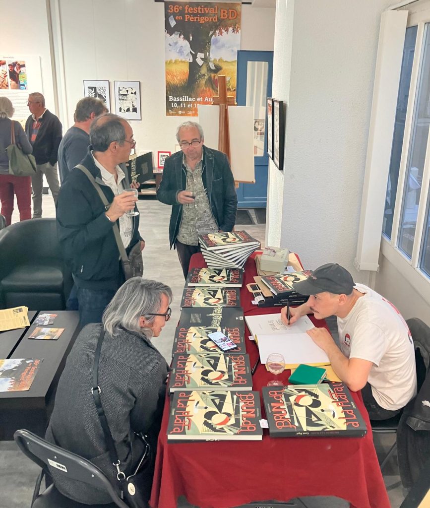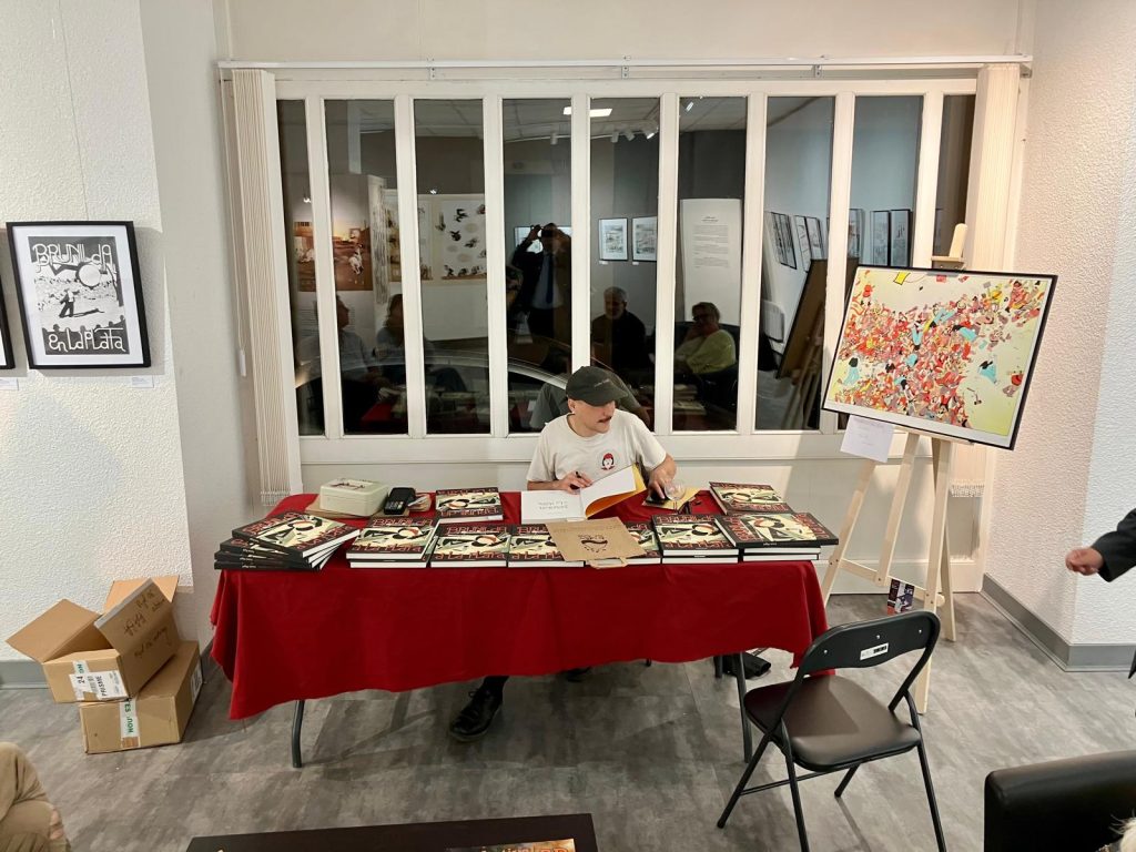 Soirée de vernissage à la galerie L’AppArt de l’exposition « Brunilda à la Plata » de Genis RIGOL : 30 planches originales de toute beauté pour une grande BD sur les affres de la création (et bien plus !). Jusqu’au 18 octobre à Périgueux (rue Arago).