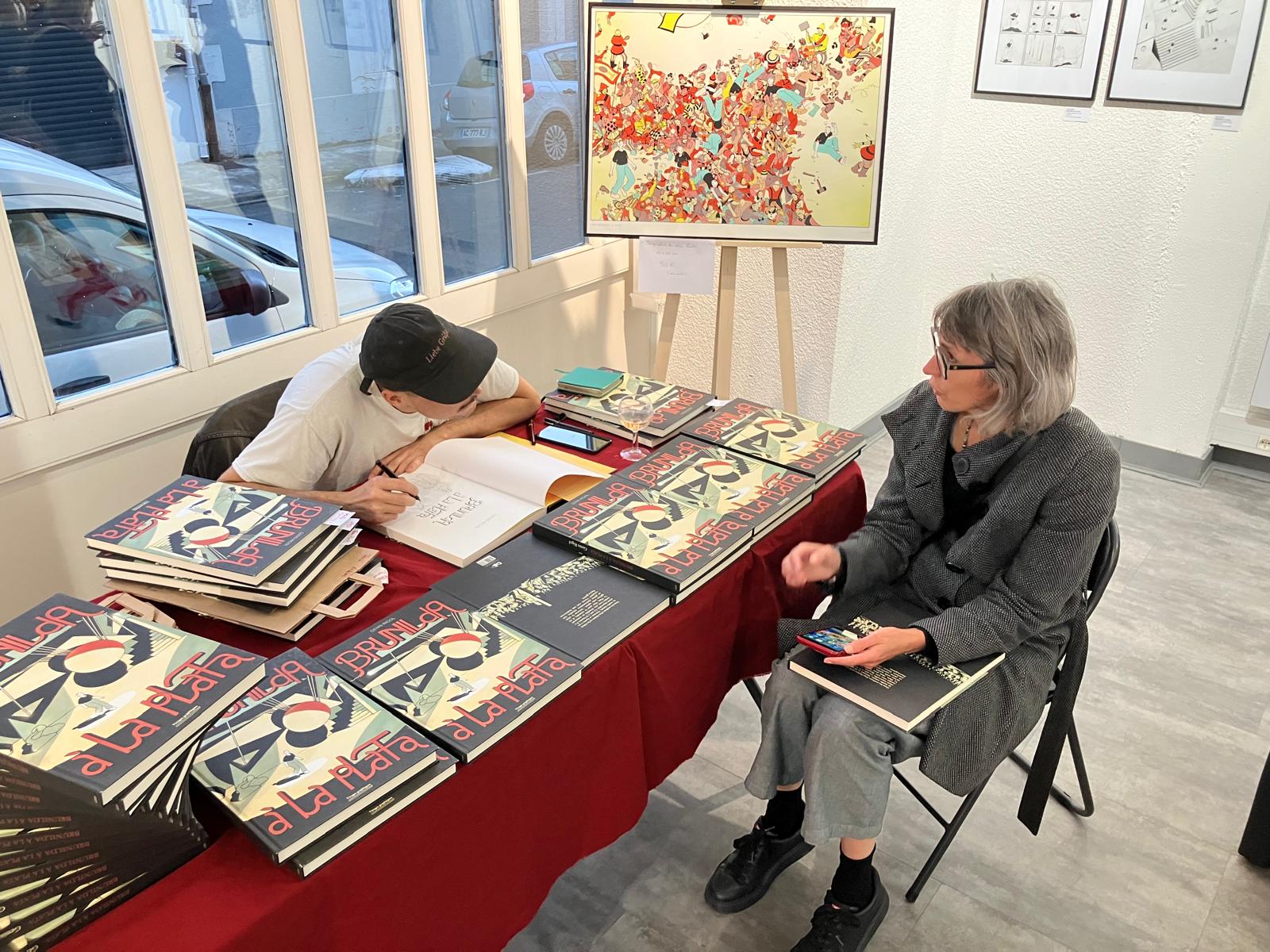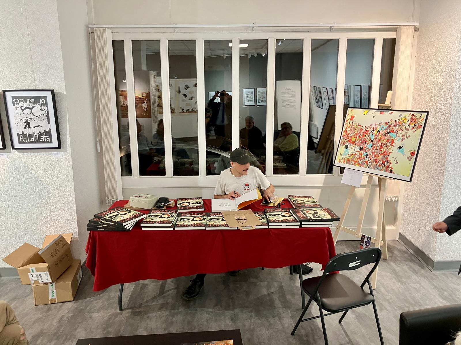 Soirée de vernissage à la galerie L’AppArt de l’exposition « Brunilda à la Plata » de Genis RIGOL : 30 planches originales de toute beauté pour une grande BD sur les affres de la création (et bien plus !). Jusqu’au 18 octobre à Périgueux (rue Arago).